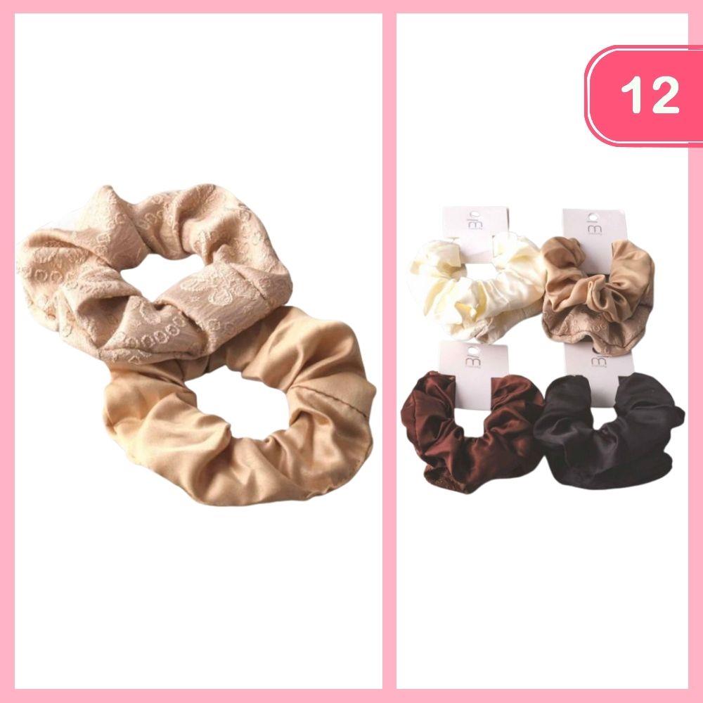 EMBROIDERY SILK LIKE DUAL SCRUNCHIE SET (12 UNITS)