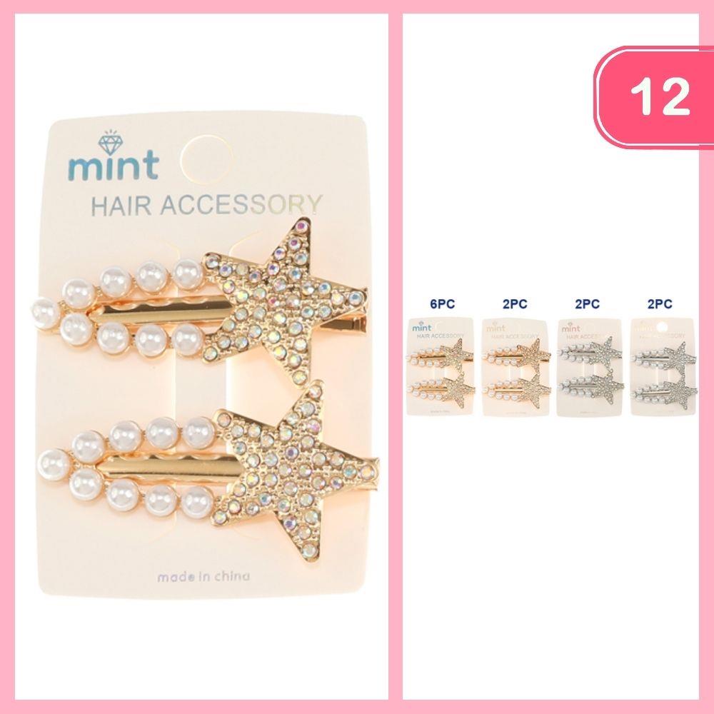 RHINESTONE STAR PEARL HAIR CLIP (12 UNITS)