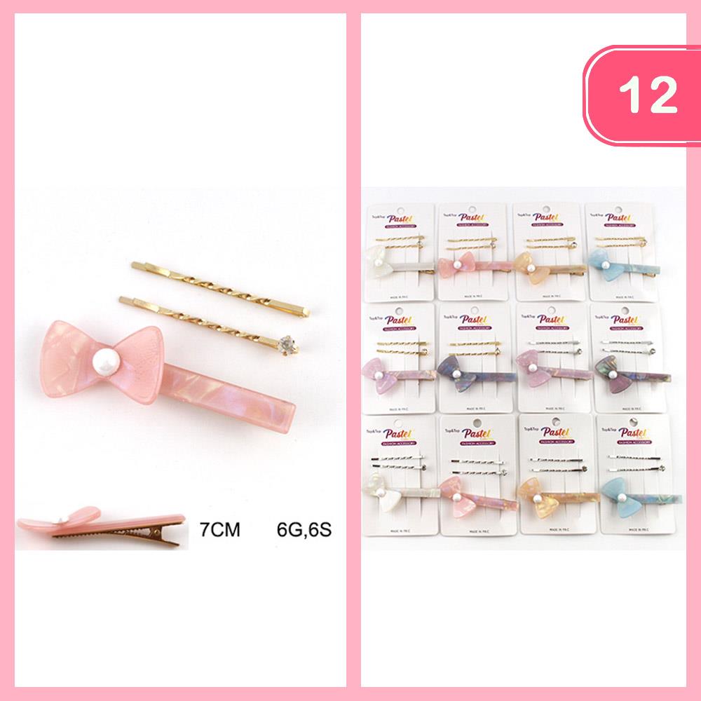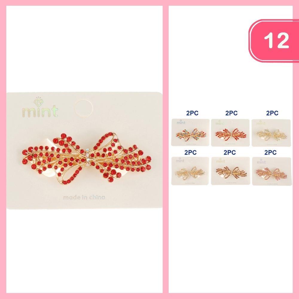 RHINESTONE HAIR BOBBY PIN BOW PIN (12 UNITS)