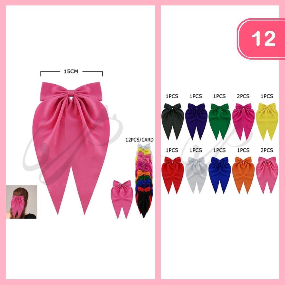 SILK LONG TAIL HAIR BOW PIN (12 UNITS)