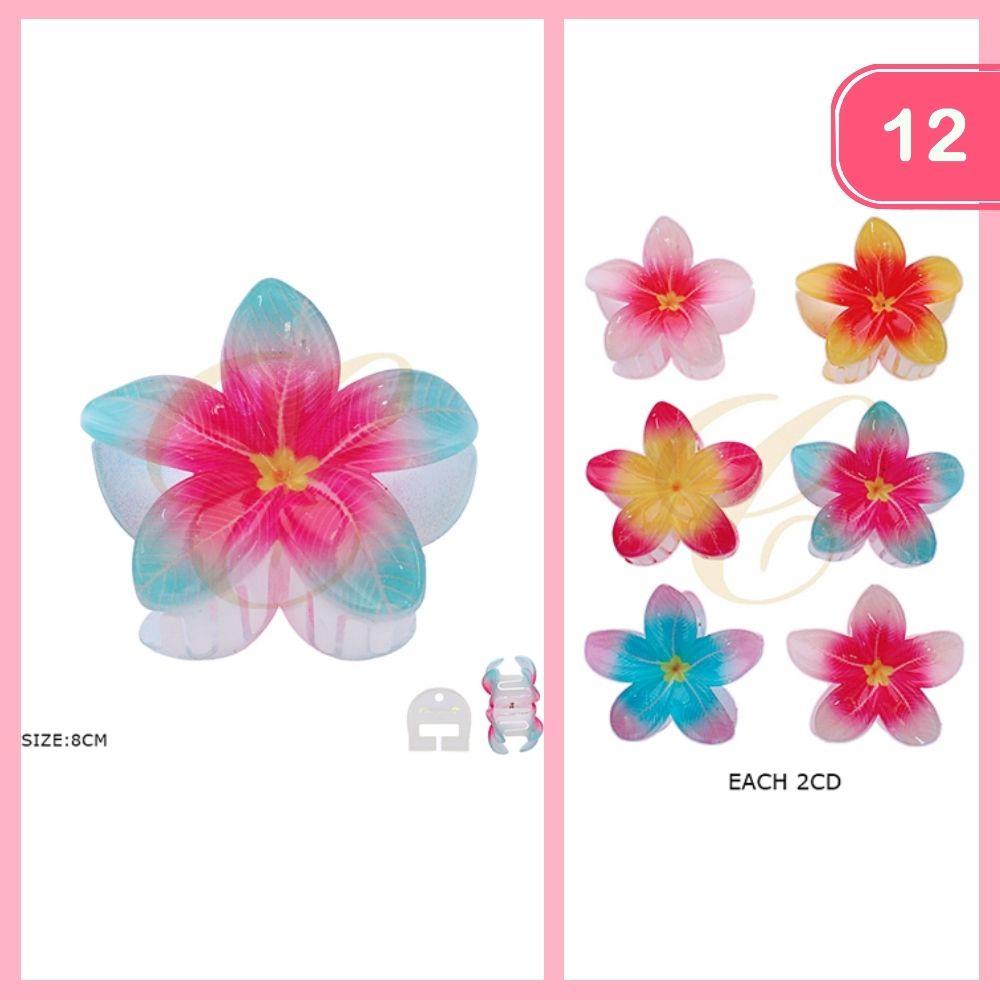 MULTI COLOR PLUMERIA HAIR CLAW CLIP (12 UNITS)