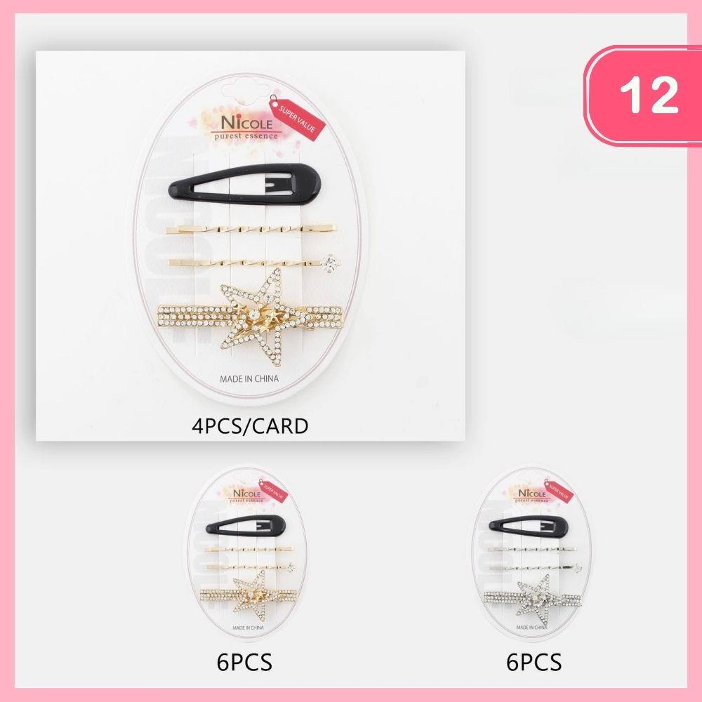 FOUR PIECE HAIR PIN SET WITH RHINESTONE STARS (12 UNITS)