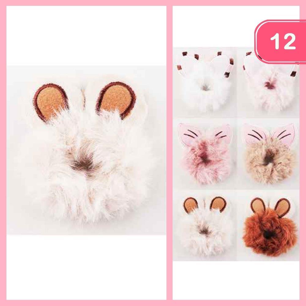 CUTE FLUFFY ANIMAL HAIR SCRUNCHIE (12 UNITS)