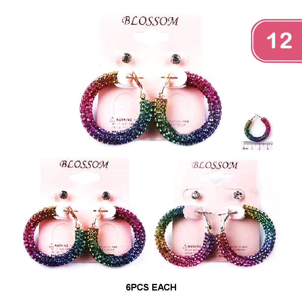 MULTI COLOR RHINESTONE HOOP EARRING (12 UNITS)