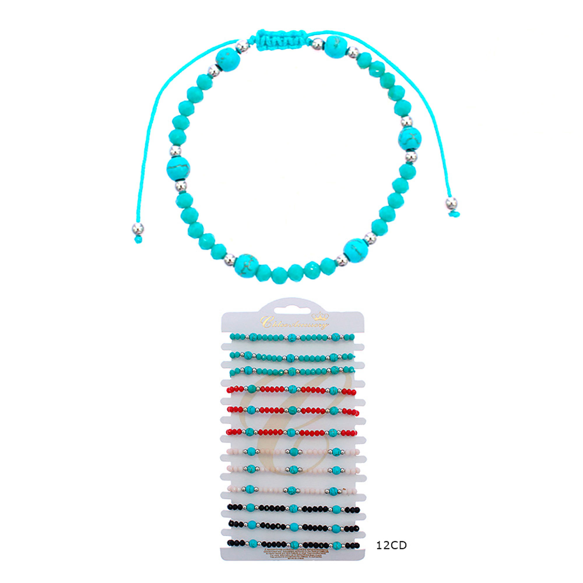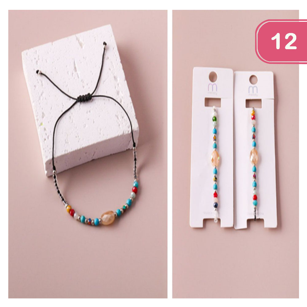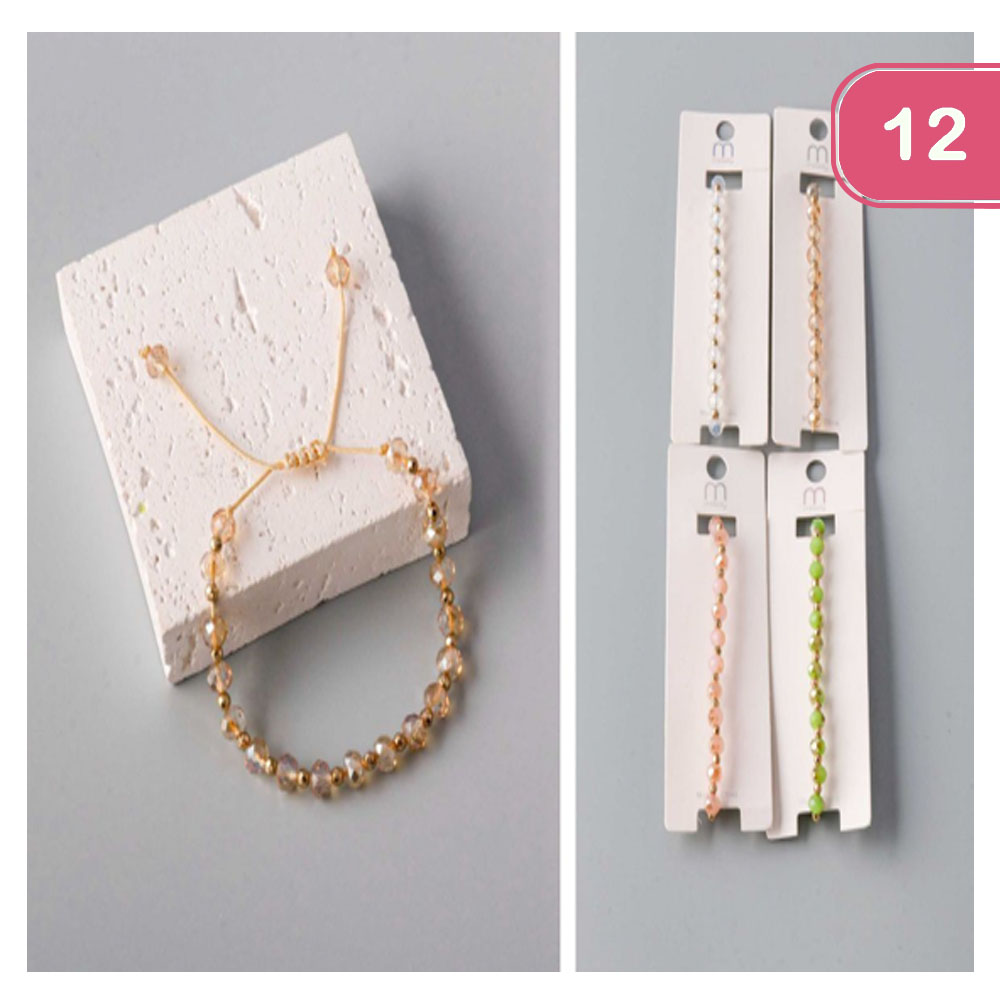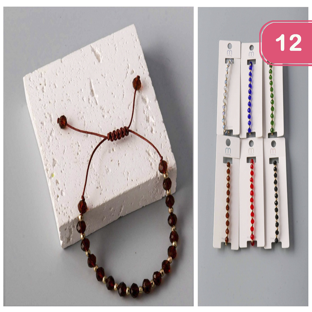 CRYSTAL BEADED STRING ADJUSTABLE BRACELET  (12 UNITS)