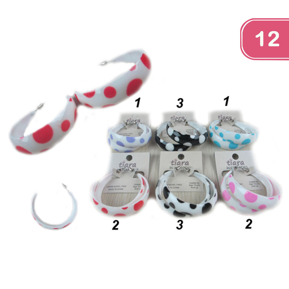 POLKA DOT PLASTIC HOOP EARRING (12 UNITS)