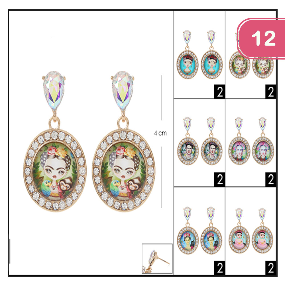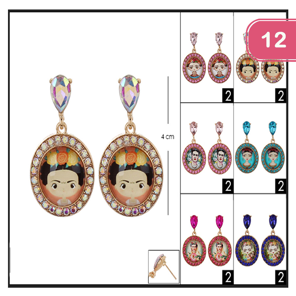 FRIDA KAHLO RHINESTONE EARRING (12 UNITS)