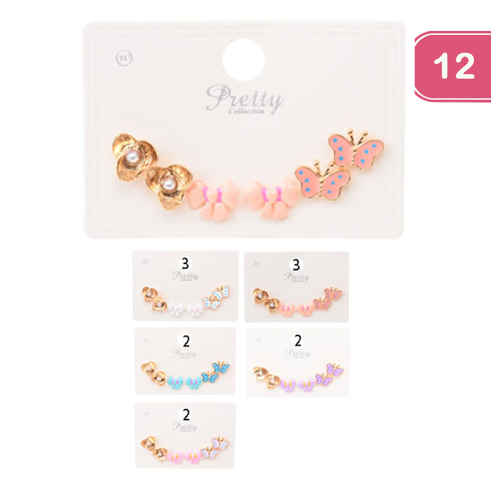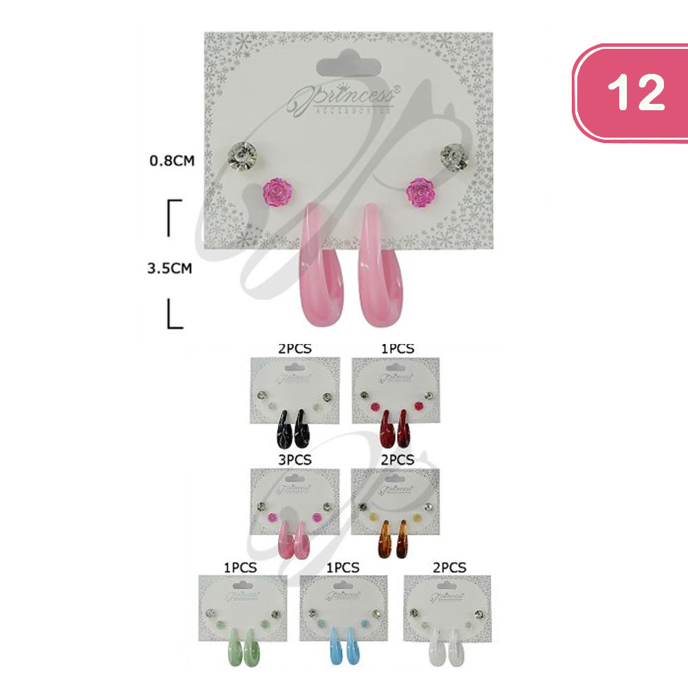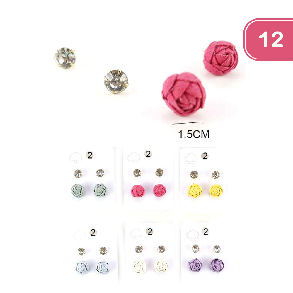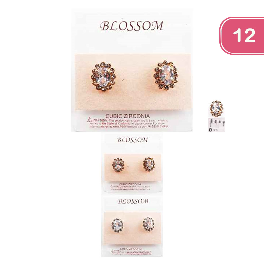 FLOWER RHINESTONE STUD EARRING SET (12 UNITS )