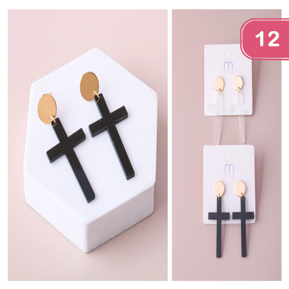 ACRYLIC CROSS DROP EARRING (12 UNITS)