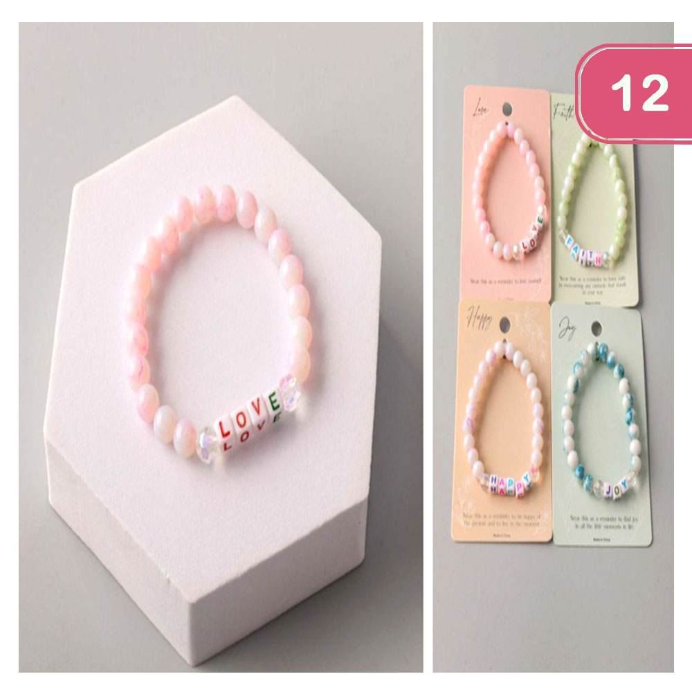 LETTER BLOCK ROUND BEADED BRACELET (12 UNITS)