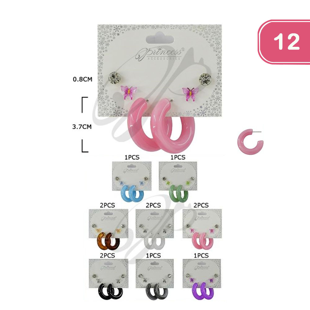 FASHION 3 PAIR HOOP EARRING SET (12 UNITS)