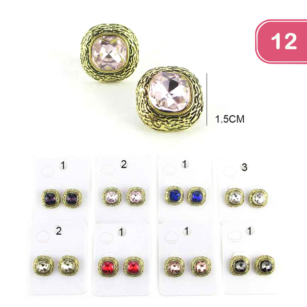RHINESTONE STUD EARRINGS (12 UNITS )