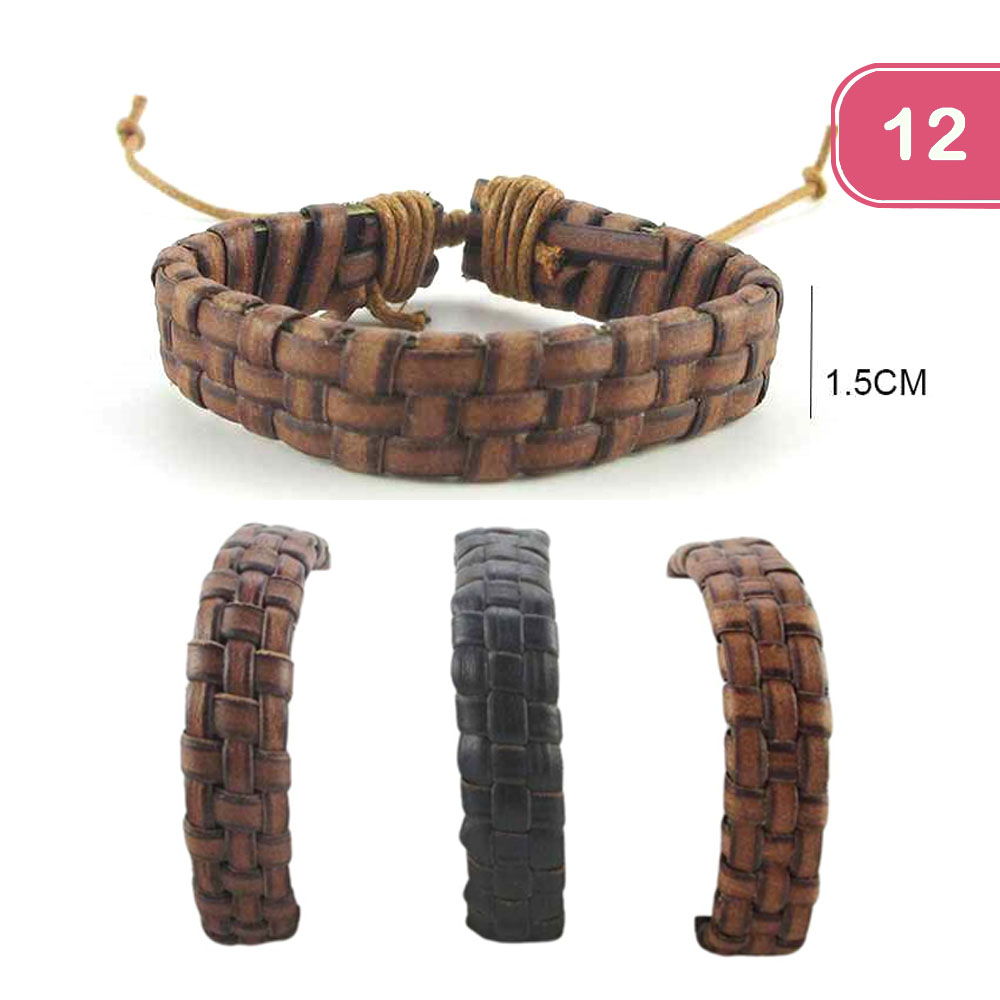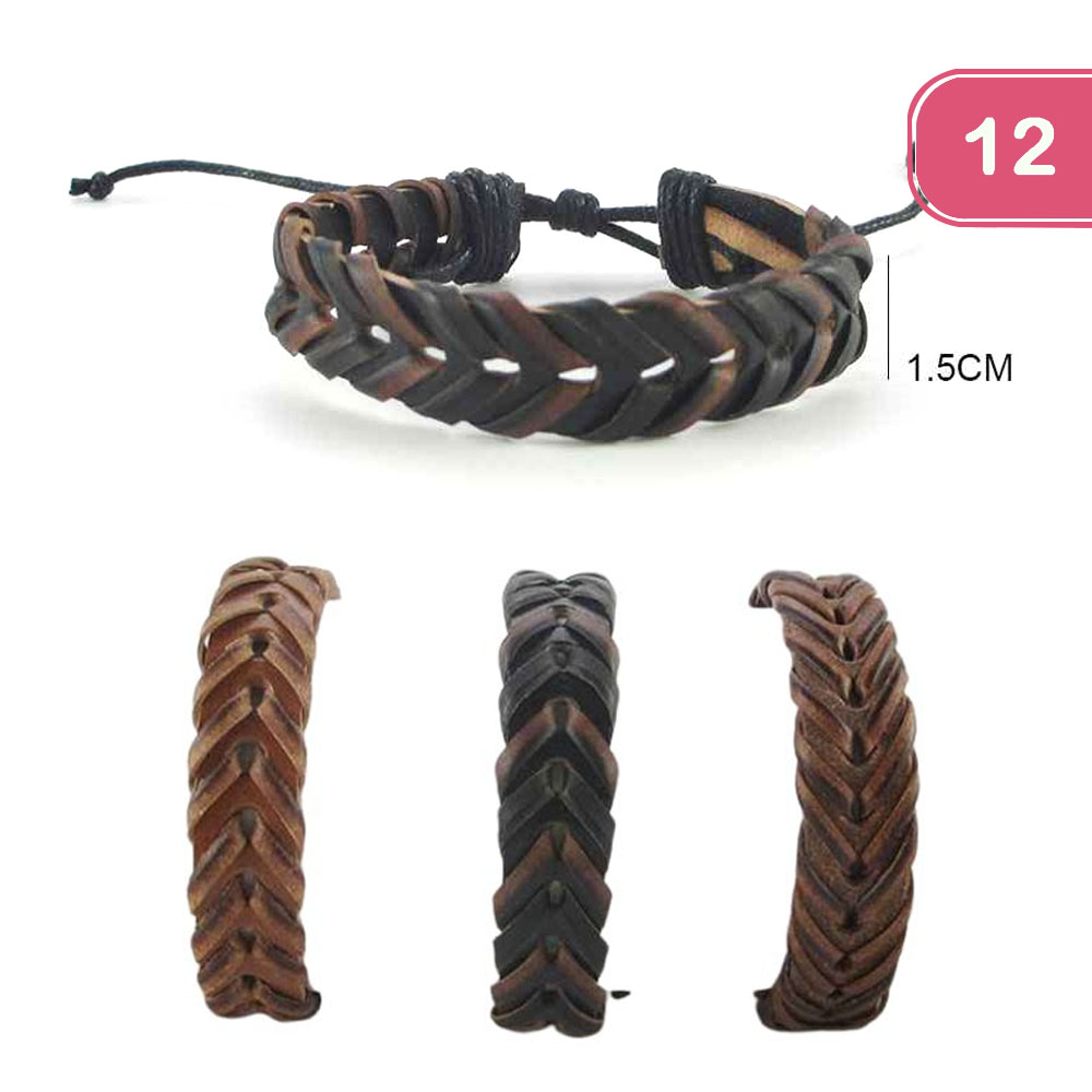 BRAIDED LEATHER ADJUSTABLE BRACELET (12 UNITS)