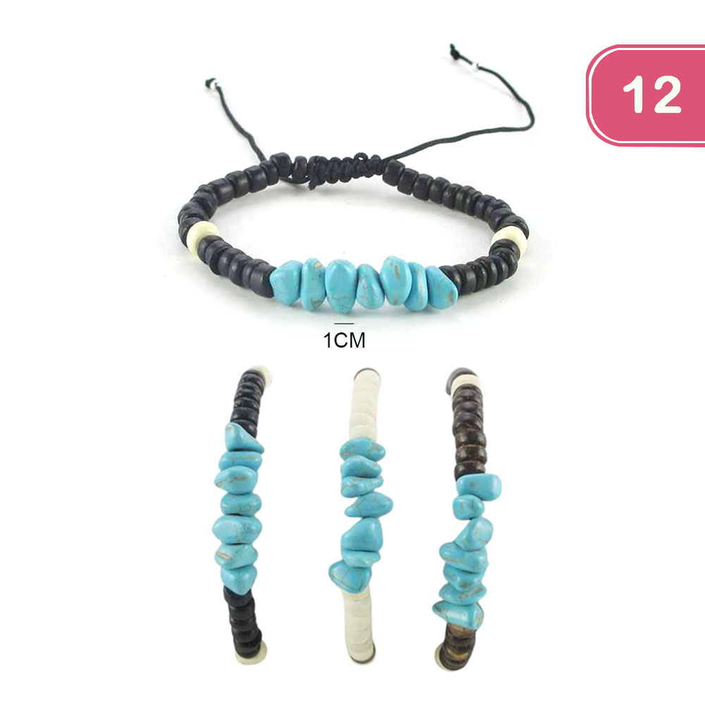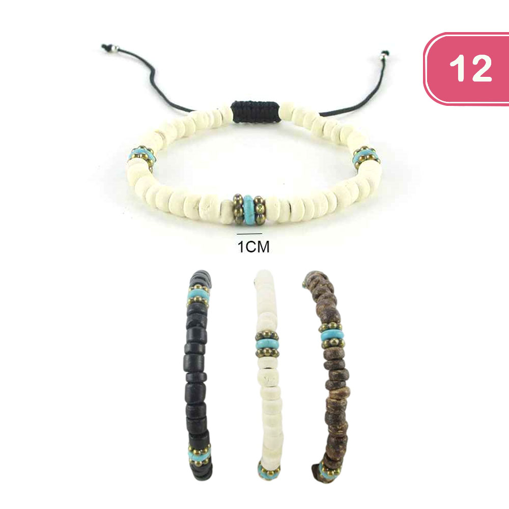 WOOD BEAD STRETCH BRACELET (12 UNITS)
