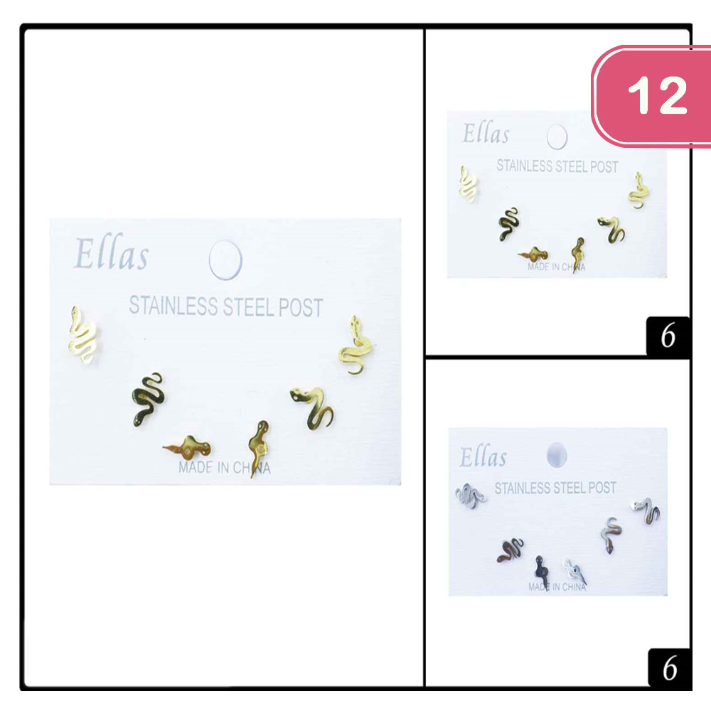 STAINLESS STEEL SNAKE POST EARRINGS (12 UNITS)