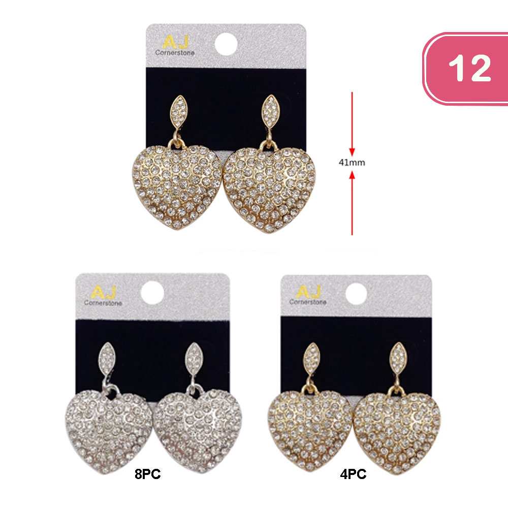 RHINESTONE HEART DANGLE EARRING (12 UNITS)