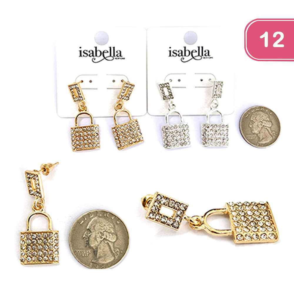 RHINESTONE LOCK DANGLE EARRING (12 UNITS)