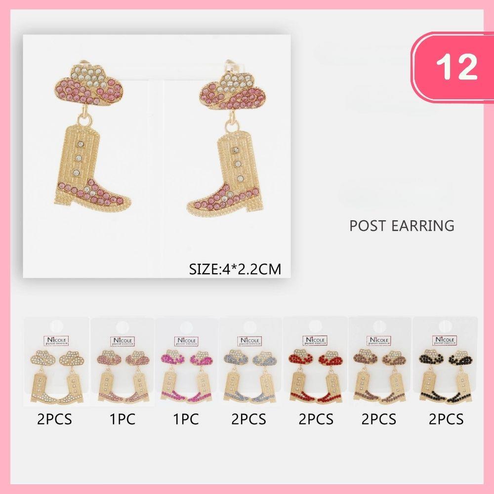 RHINESTONE WESTERN HAT BOOT EARRINGS (12 UNITS)