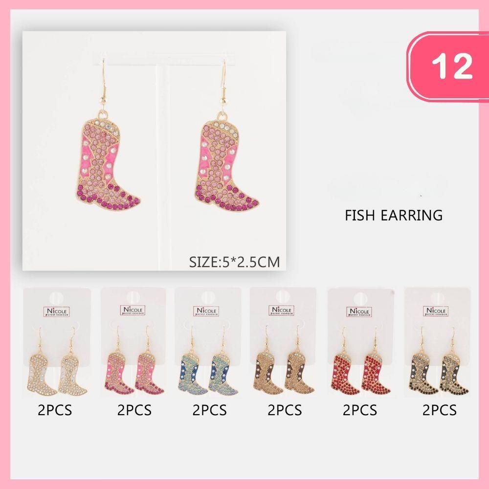 RHINESTONE WESTERN BOOT EARRINGS (12 UNITS)