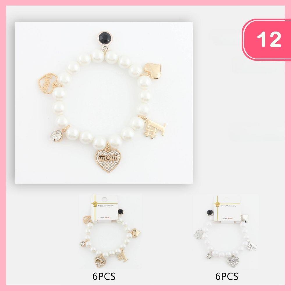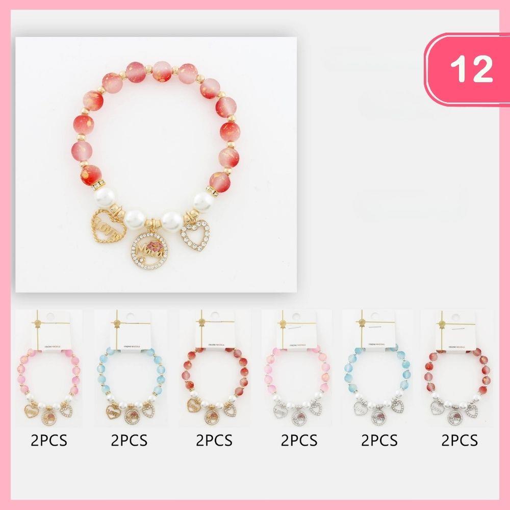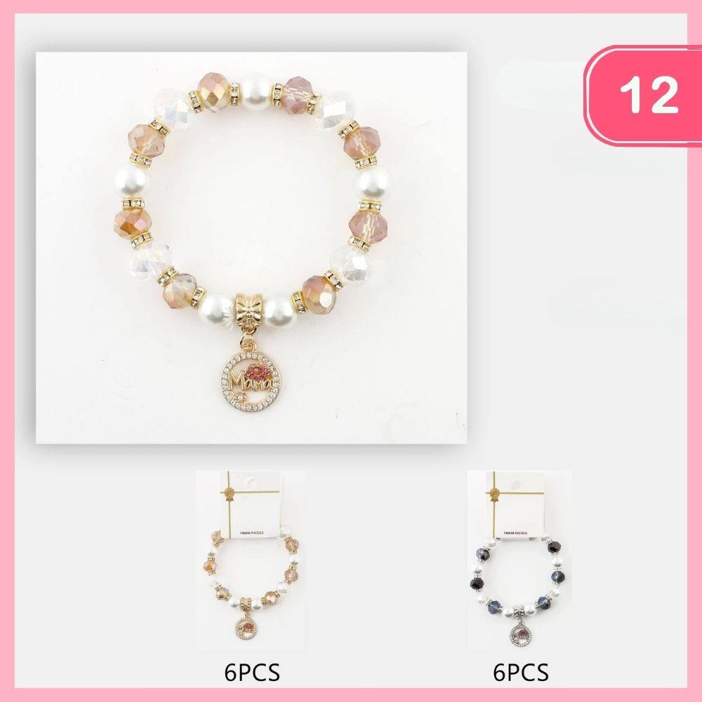 RHINESTONE BEADED ROUND MOM PENDANT BRACELET (12 UNITS)