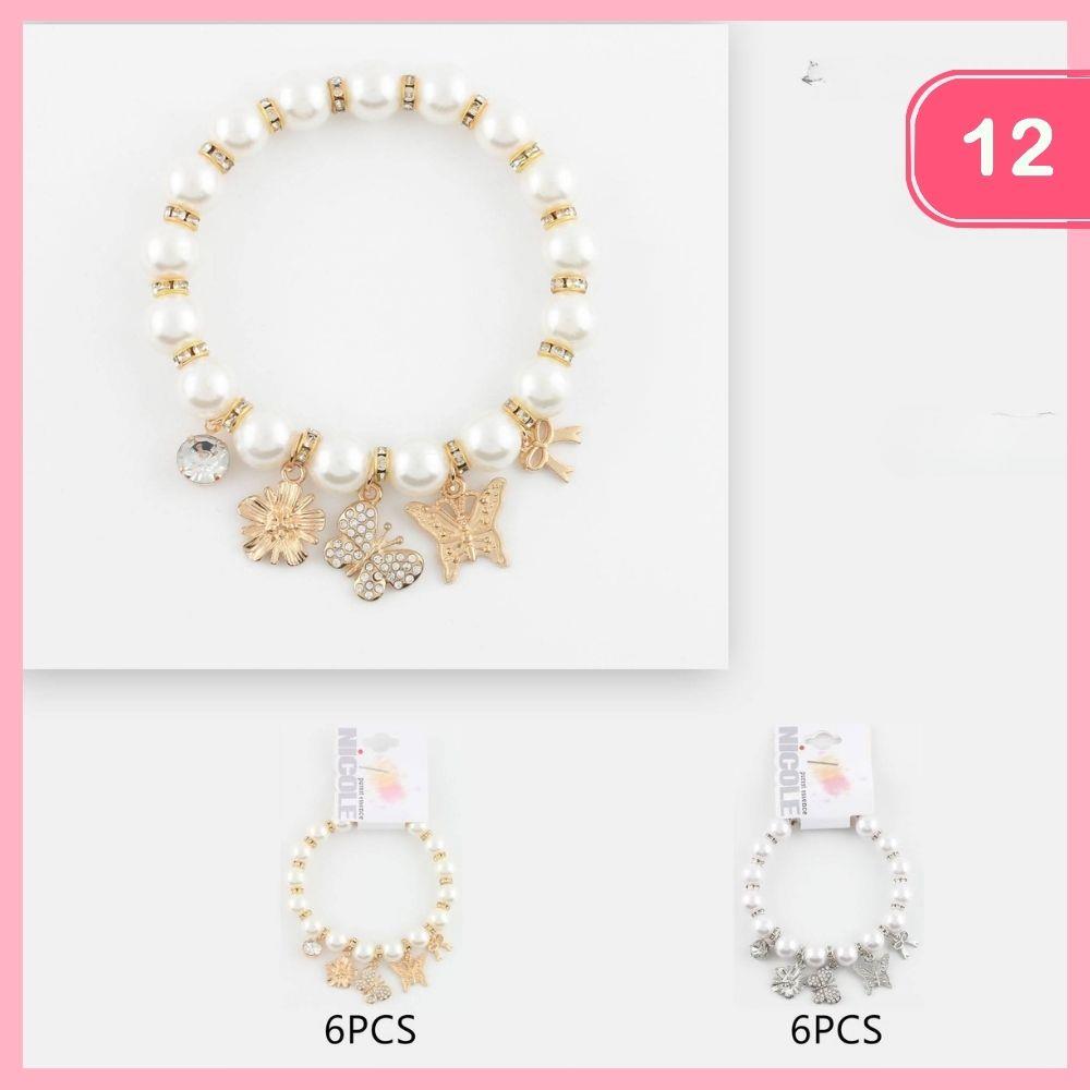 RHINESTONE BEADED BUTTERFLY FLOWER BOW CHARM BRACELET (12 UNITS)