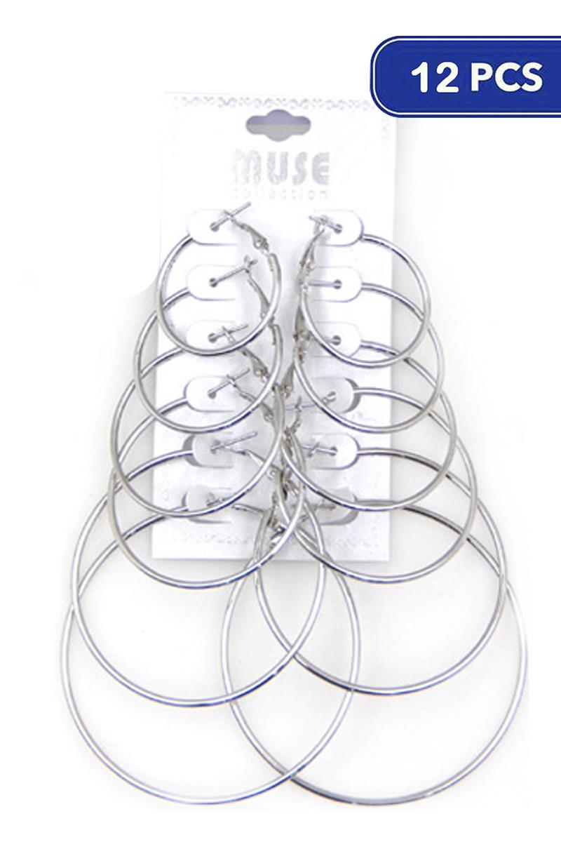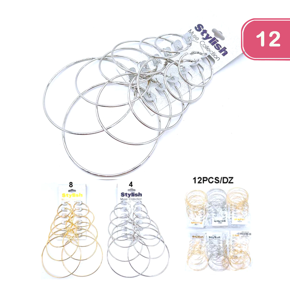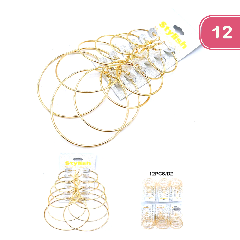 FASHION METAL HOOP MULTI PAIR EARRING (12 UNITS)