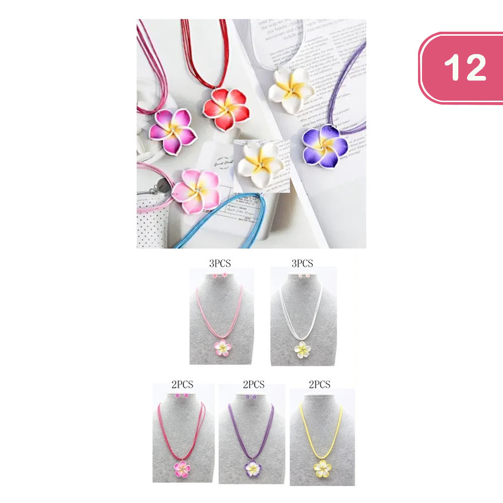 FASHION HAWAIIAN FLOWER NECKLACE EARRING SET (12 UNITS)