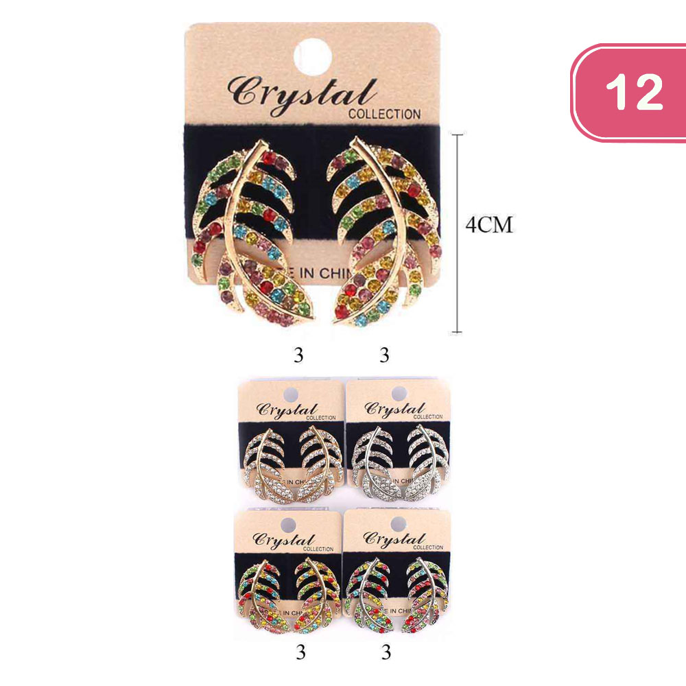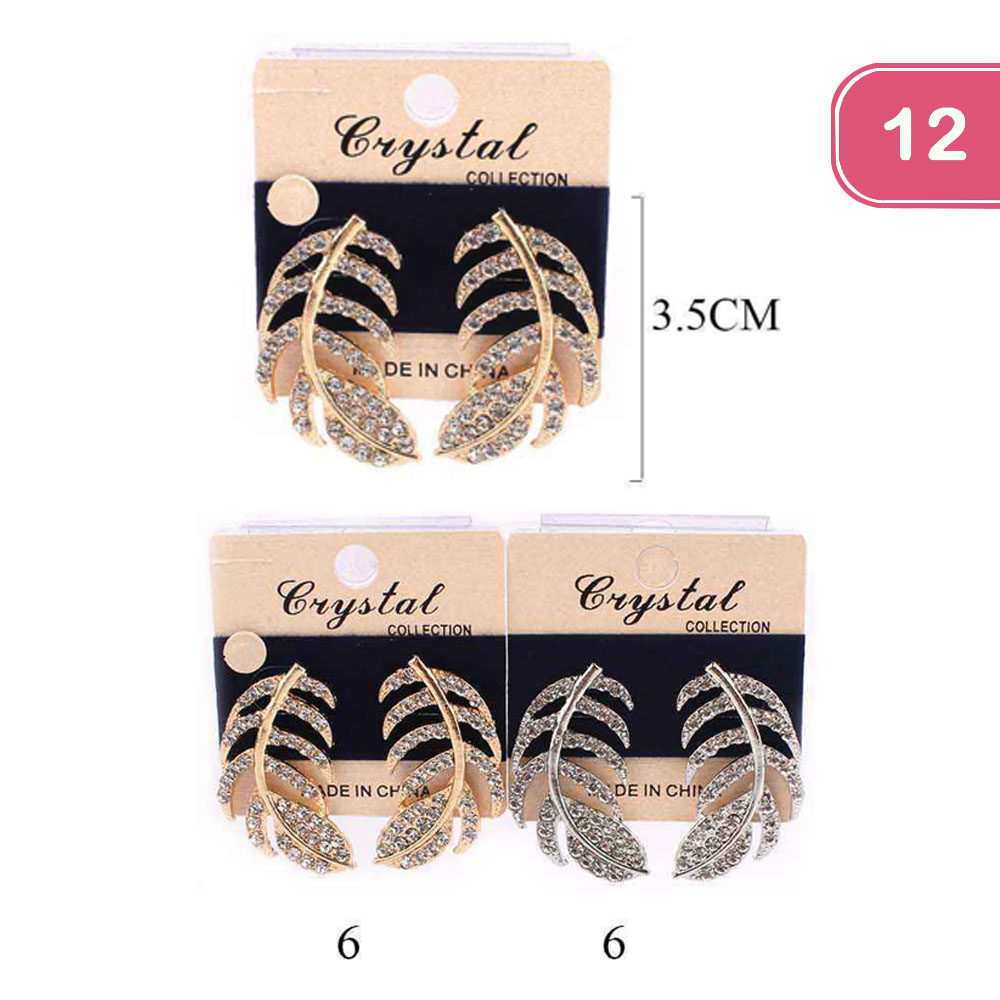 RHINESTONE FEATHER EARRING (12 UNITS )