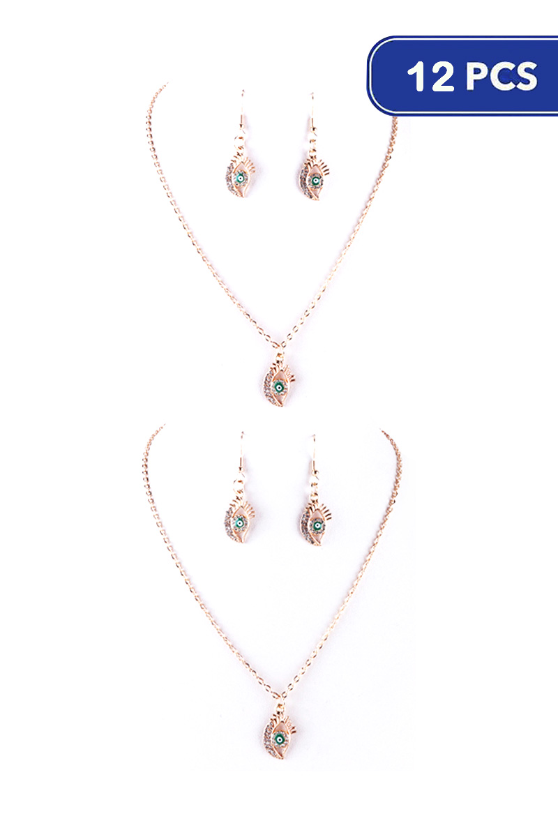 FASHION EVIL EYE PENDANT NECKLACE EARRING SET (12 UNITS)
