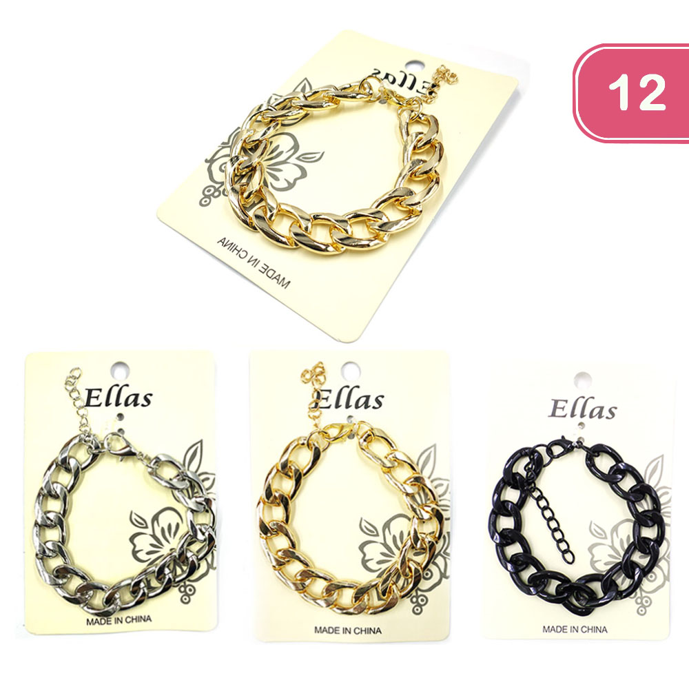 FASHION PLAIN METAL CHAIN LINK BRACELET 12 PCS