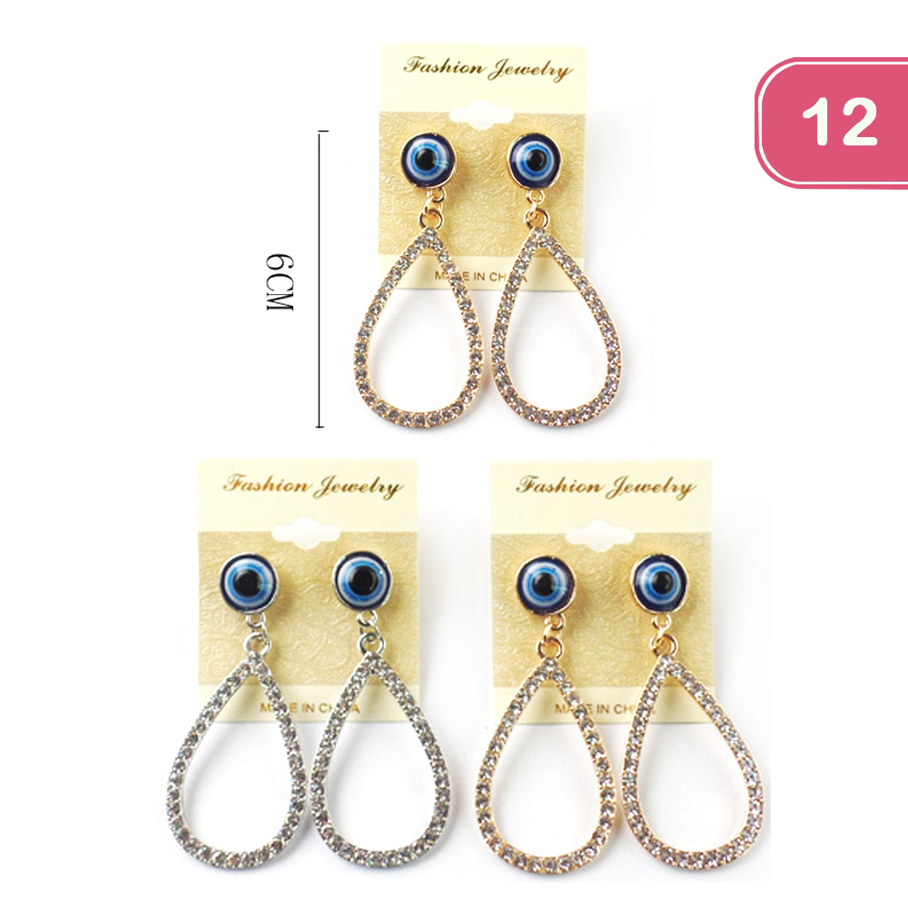 FASHION EVIL EYE RHINESTONE TEAR DROP EARRING (12 UNITS)