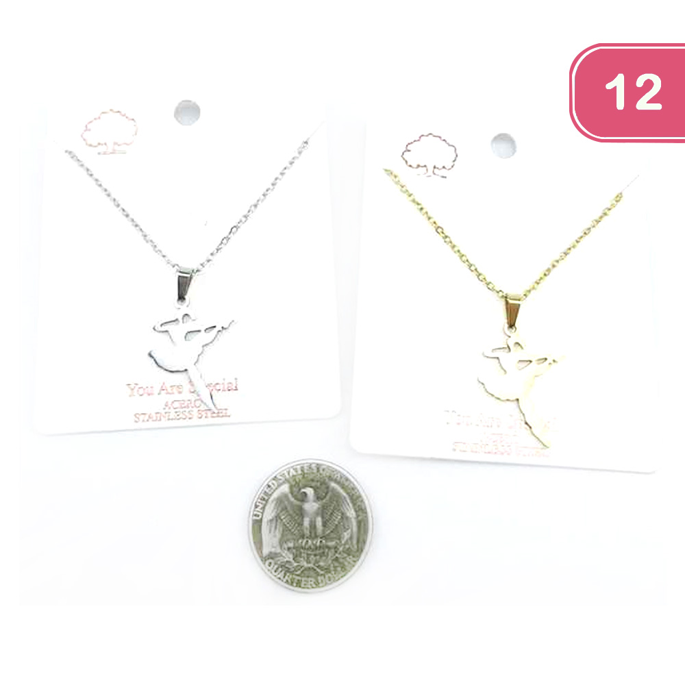FASHION BALLERINA STAINLESS STEEL PENDANT NECKLACE (12UNITS)