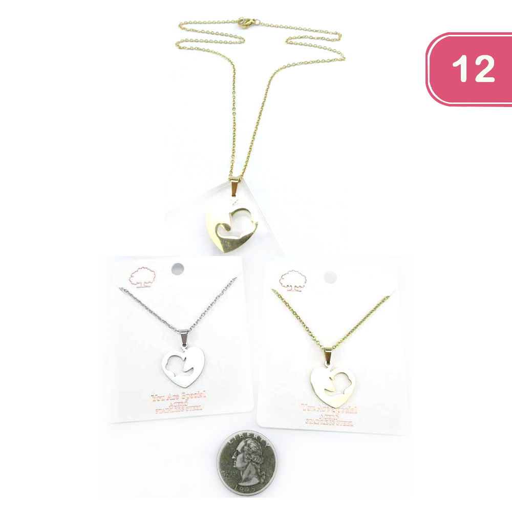 FASHION HEART STAINLESS STEEL PENDANT NECKLACE (12 UNITS)