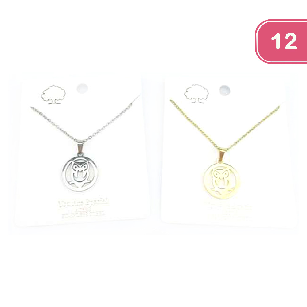 FASHION OWL STAINLESS STEEL NECKLACE (12 UNITS)