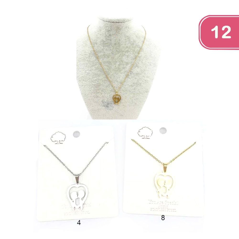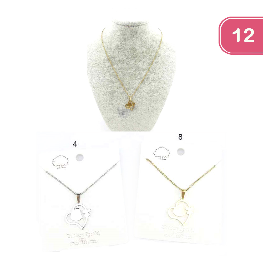 FASHION HEART STAINLESS STEEL  NECKLACE (12 UNITS)