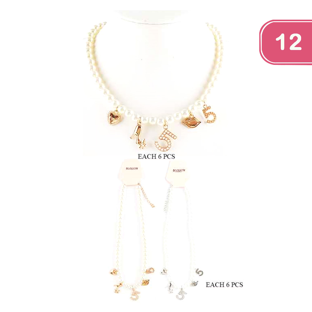FASHION PEARL CHARM NECKLACE (12 UNITS)
