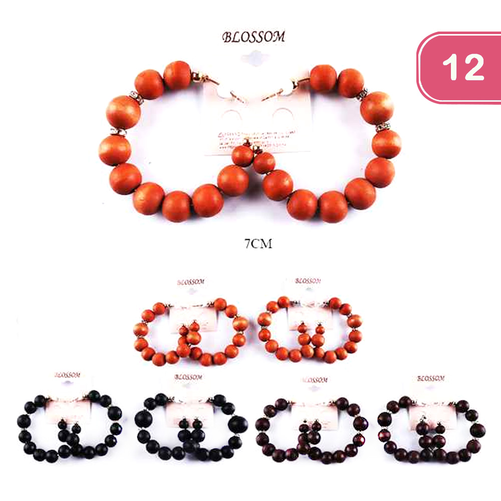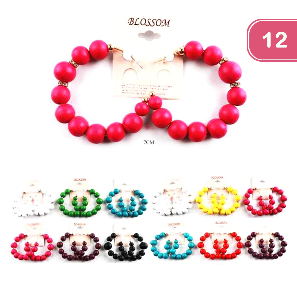 FASHION WOODEN BEAD HOOP EARRING (12 UNITS)