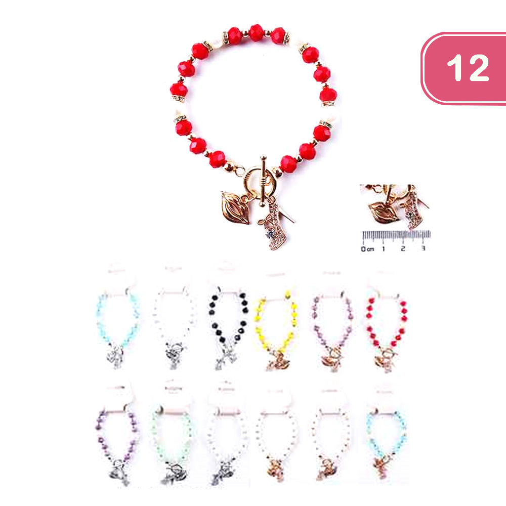 FASHION BEAD LIPS HEELS CHARM BRACELET (12 UNITS)