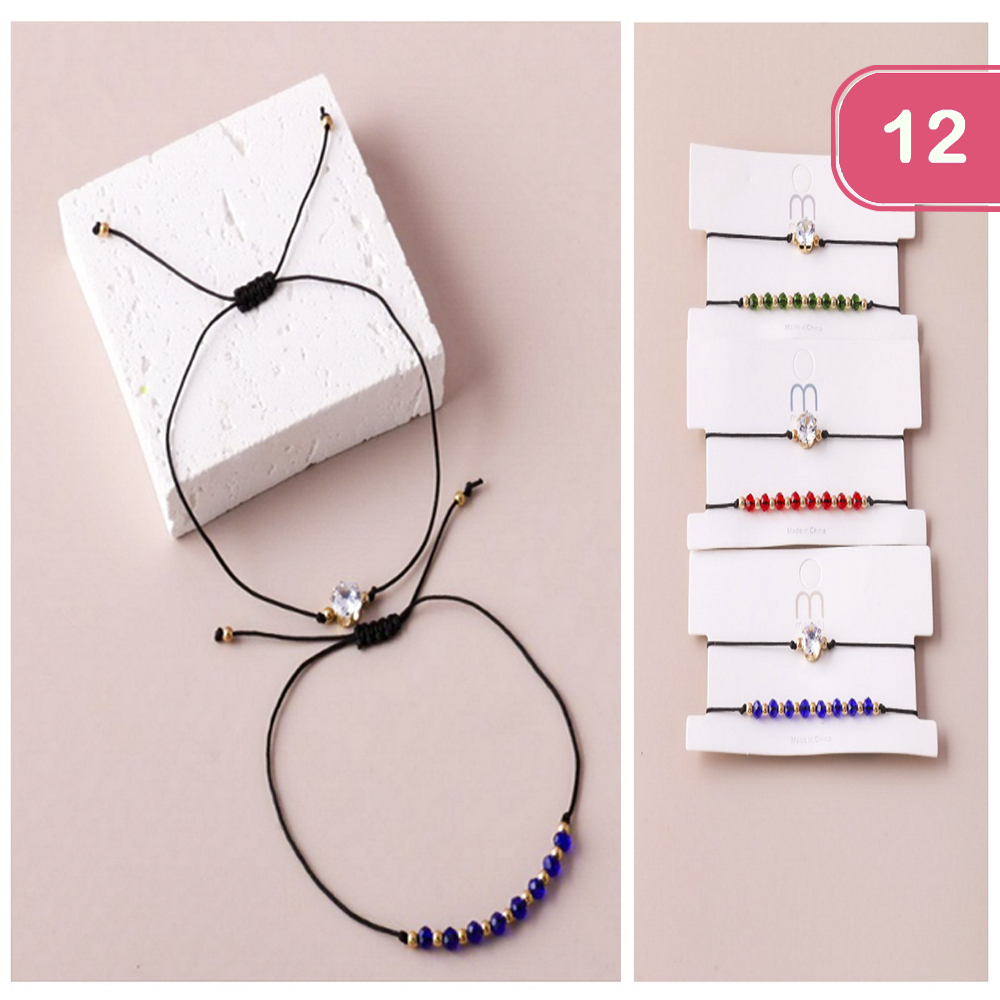 CRYSTAL BEADED STRING BRACELETS (12 UNITS)