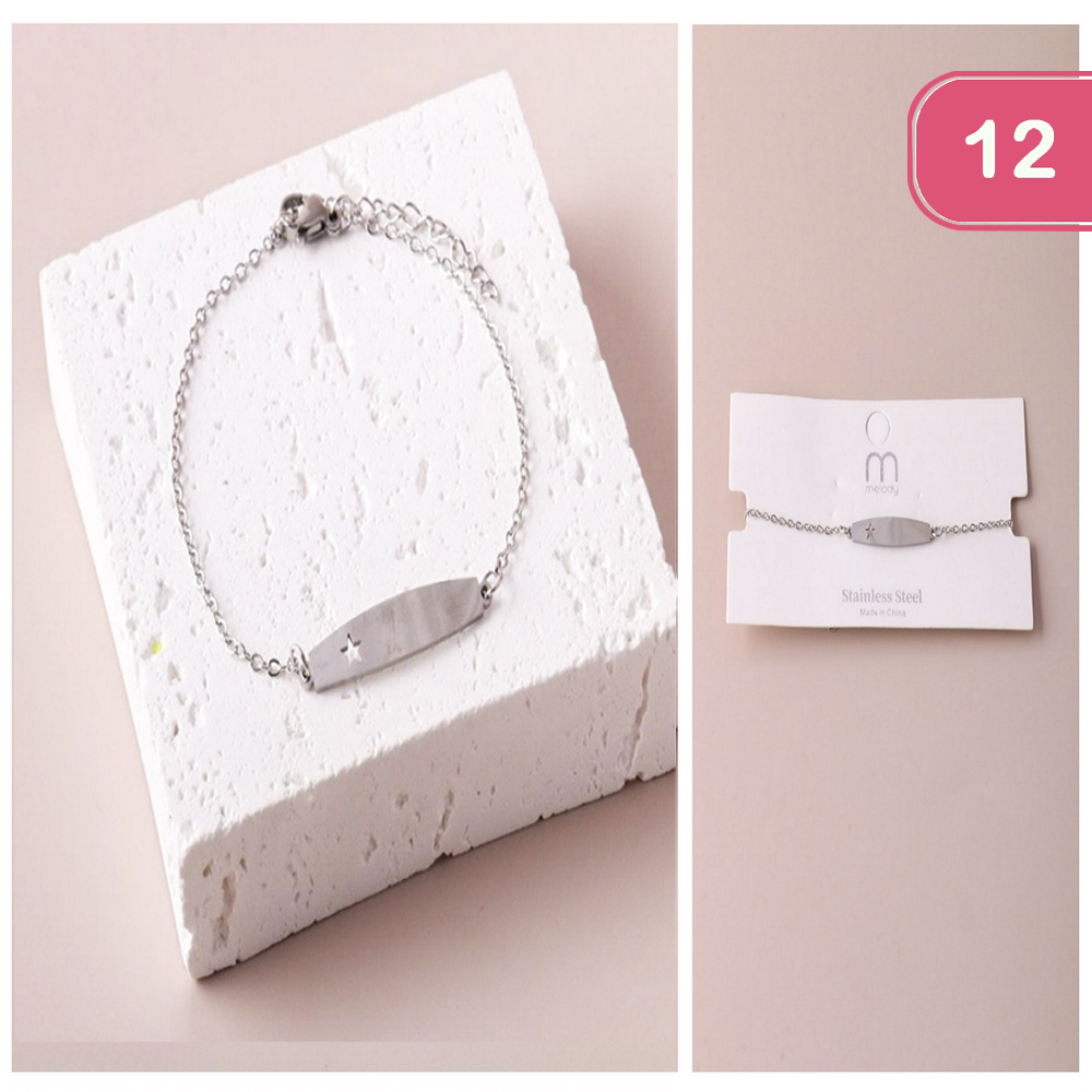STAINLESS STEEL STAR BAR BRACELET (12 UNITS)