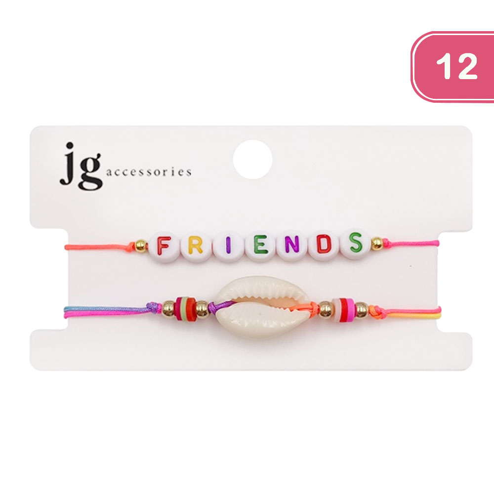 FASHION 2PAIR FRIEND/SHELL STRING BRACELET (12 UNITS)