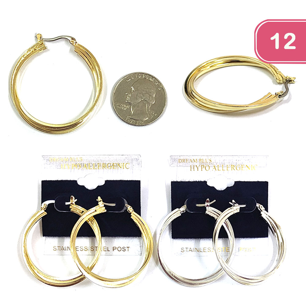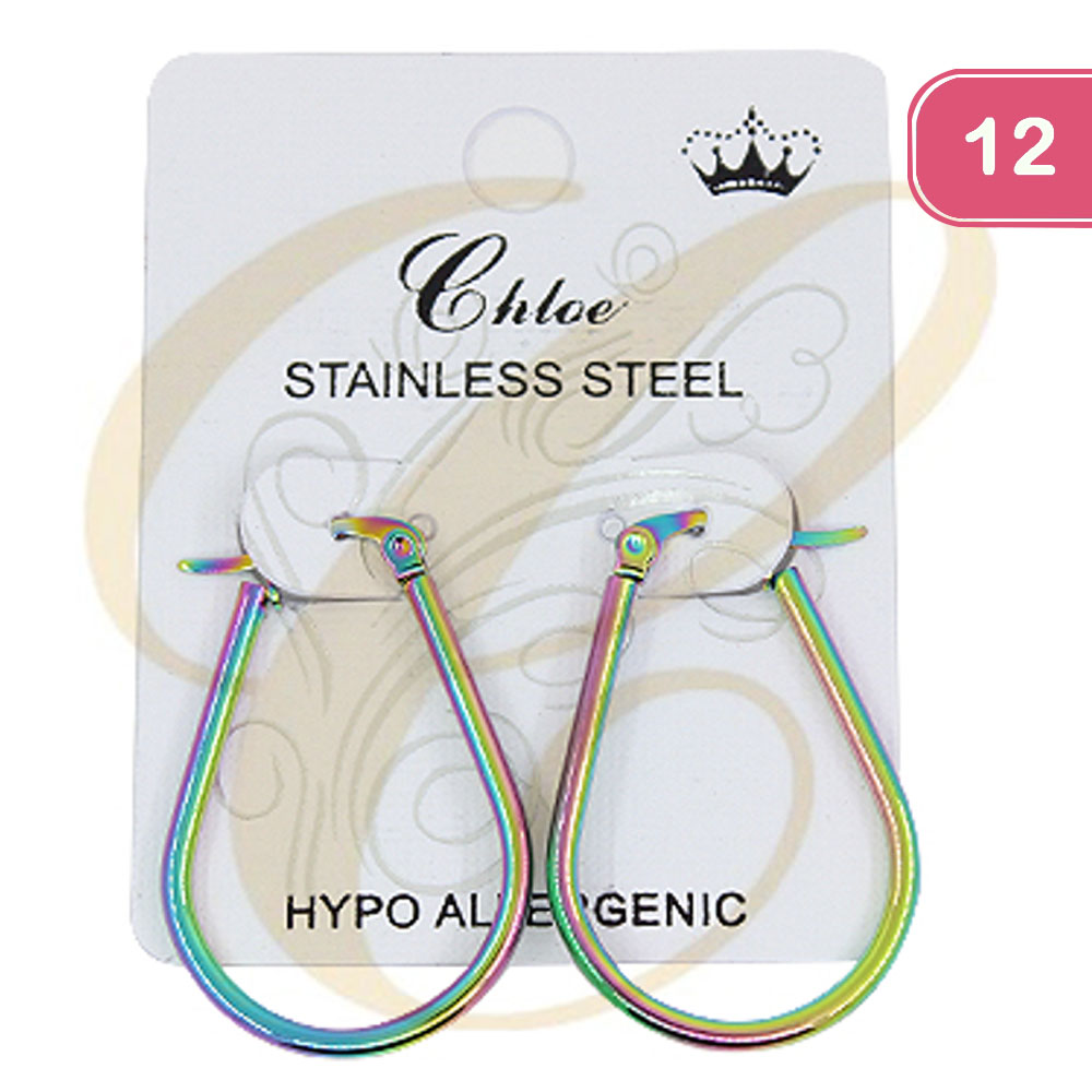 FASHION STAINLESS STEEL HOOP EARRING (12 UNITS)