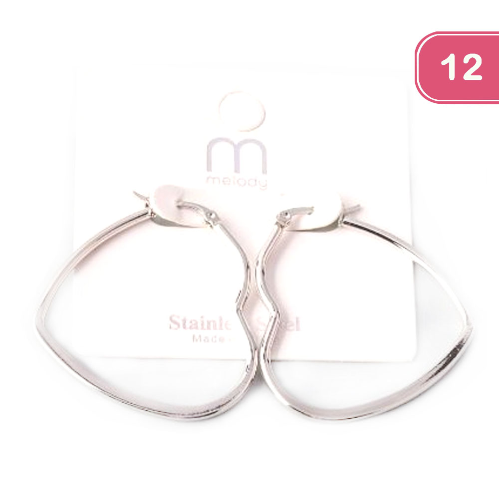 HEART HOOP STAINLESS STEEL EARRING (12 UNITS)