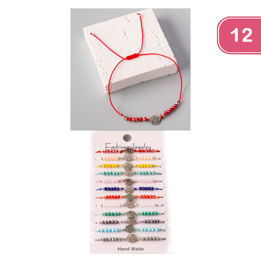 ROSE BEADED STRING BRACELET ( 12 UNITS)