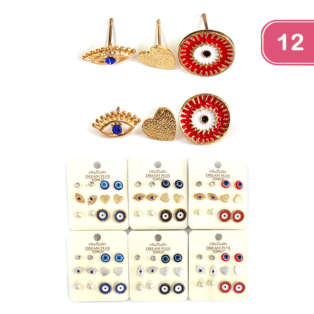 EVIL EYE STUD EARRING SET (12 UNITS)