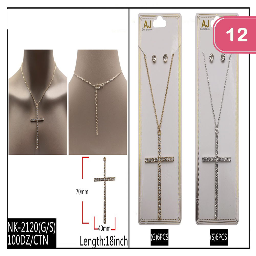 FASHION RHINESTONE CROSS PENDANT NECKLACE (12 UNITS)