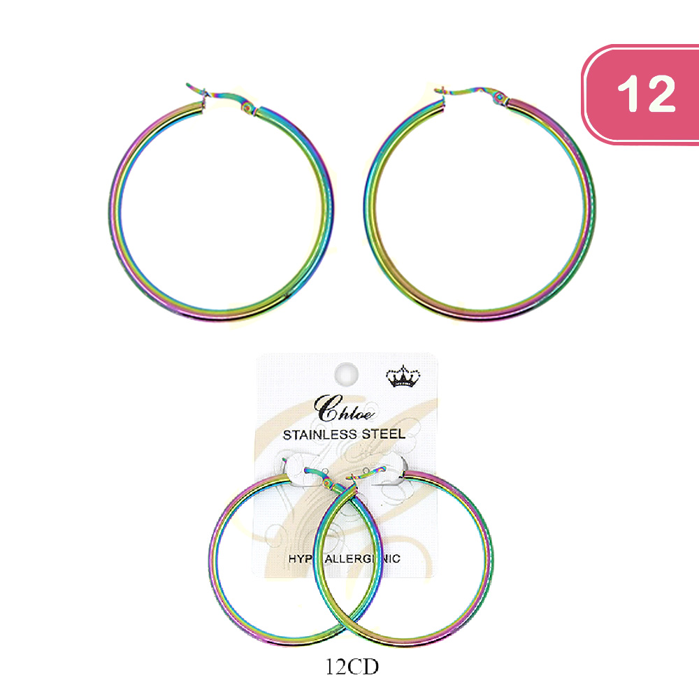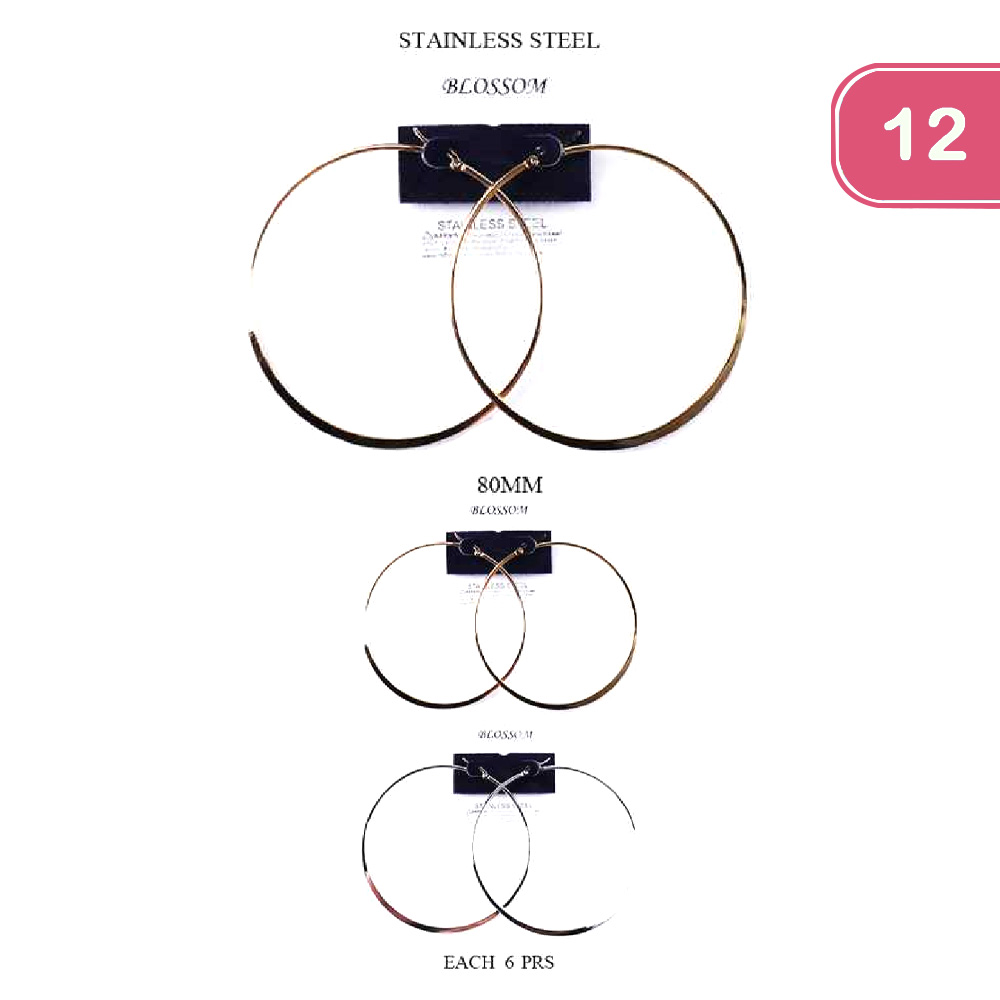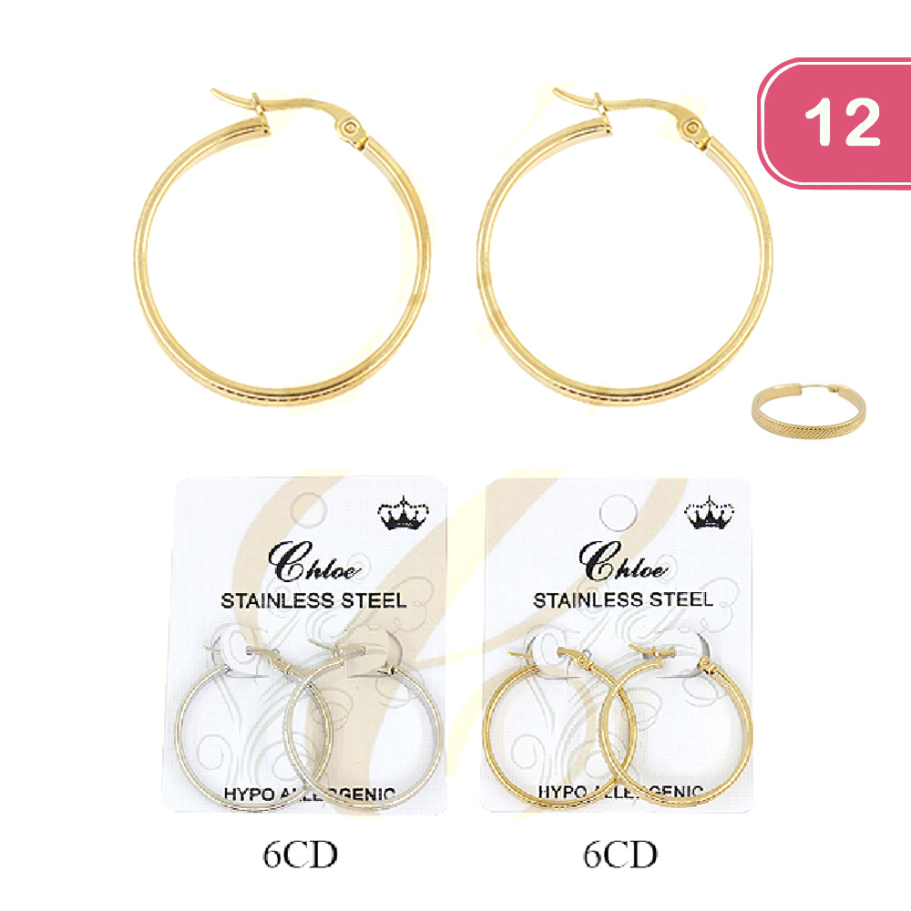 FASHION STAINLESS STEEL HOOP EARRING (12UNITS)
