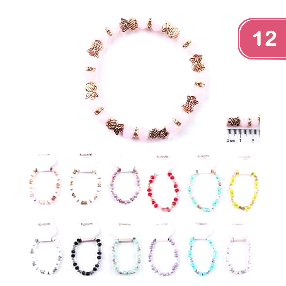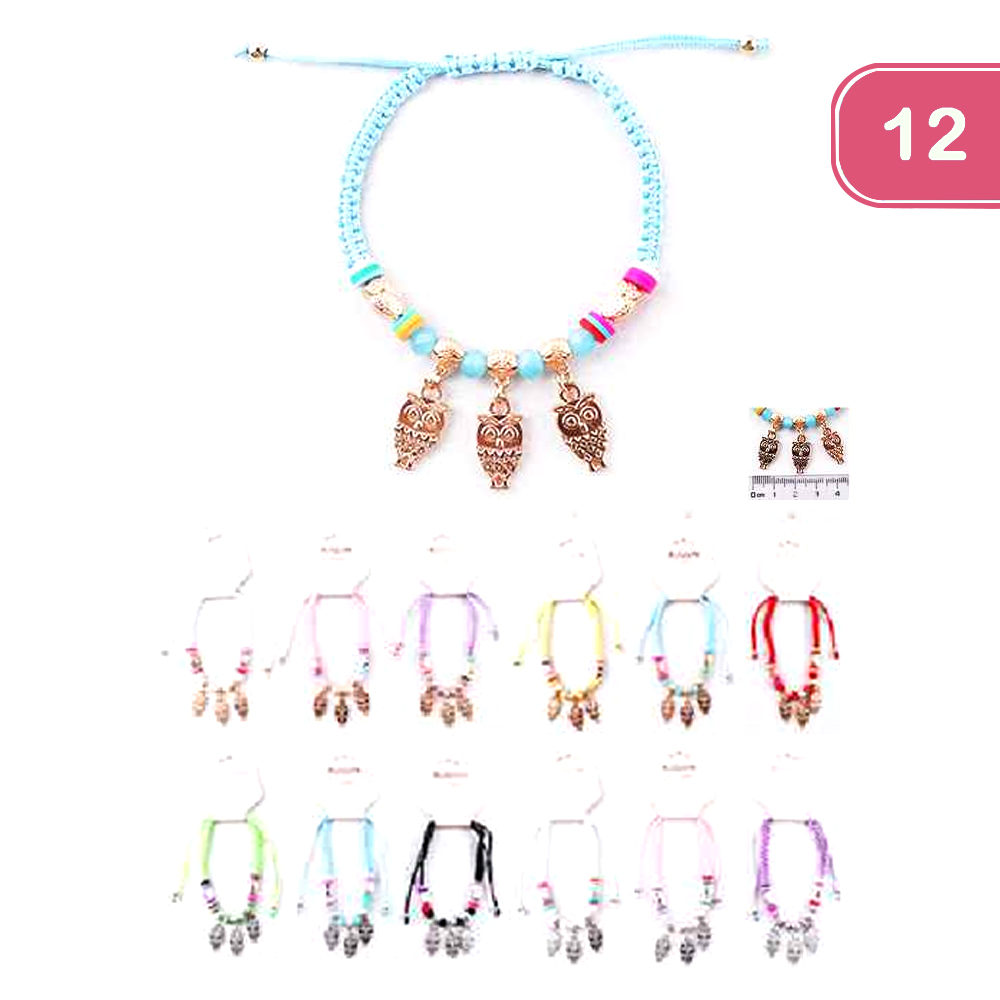 FASHION BEADED ADJUSTABLE OWL BRACELET(12UNITS)