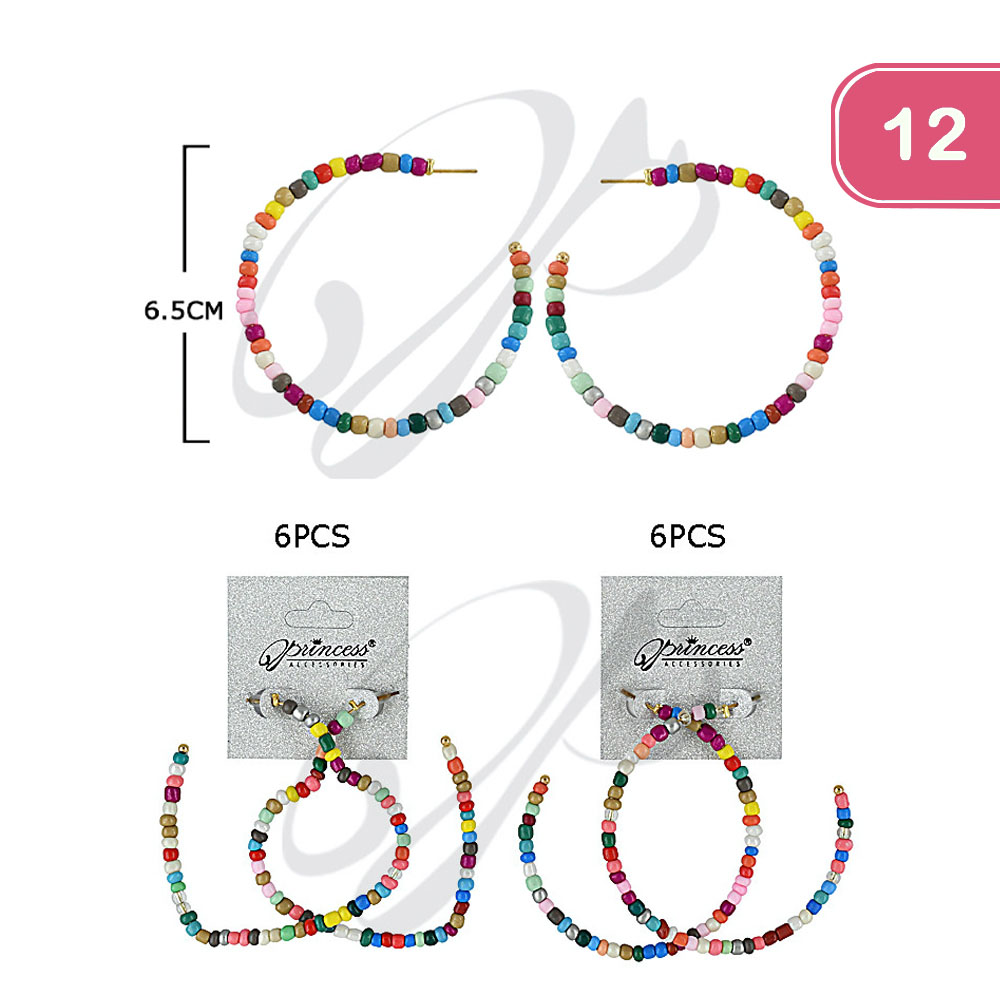 FASHION SEED BEAD HOOP EARRING (12 UNITS)