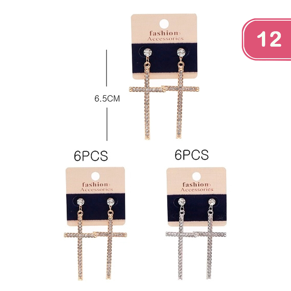 FASHION RHINESTONE CROSS DANGLE EARRING (12 UNITS)